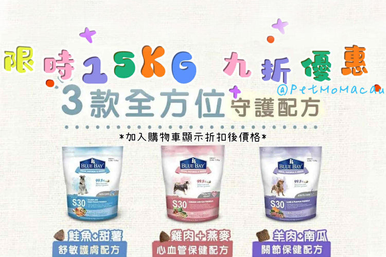 BlueBayS30 15KG乾糧限時9折! 加入購物車即自動折扣`