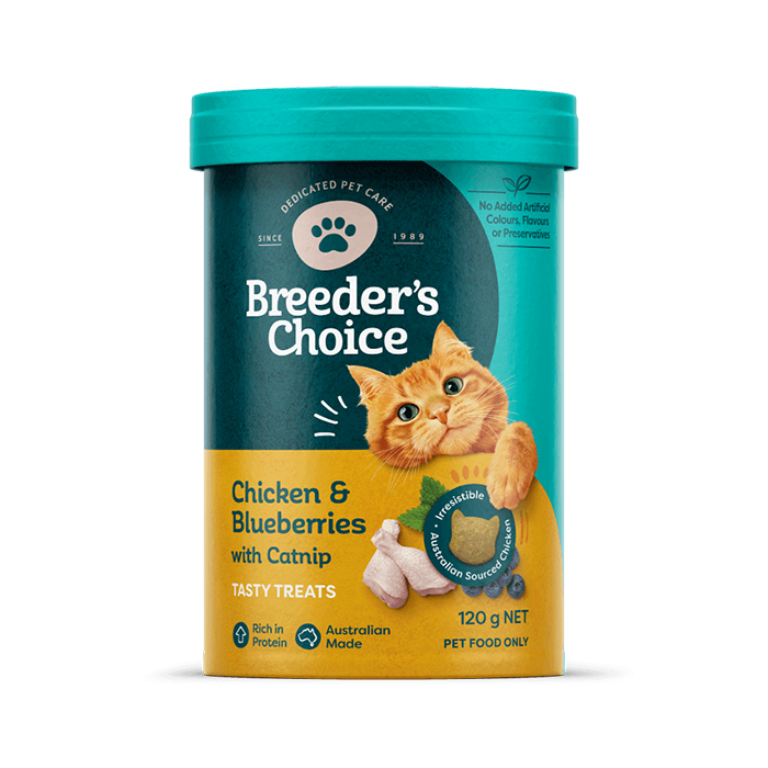 雞肉(40%)、小麥粉、米粉、木薯澱粉、馬鈴薯澱粉、甘油、藍莓(3.1%)、水解雞肉、雞消化物、天然防腐劑(檸檬酸、緩衝白蒸餾醋)、鹽、瓜爾豆膠、天然色素(薑黃素)、貓薄荷 (0.3%)、肝臟、碳酸鈣、牛磺酸、天然抗氧化劑