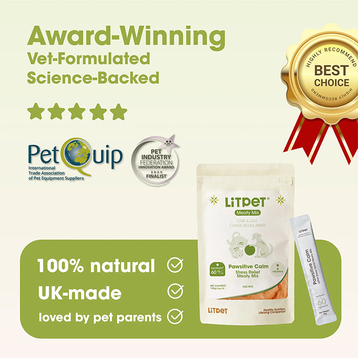 每日將 Pawsitive M&M 添加至寵物餐食中,有助於建立穩定情緒與長期放鬆狀態,提升整體生活品質。