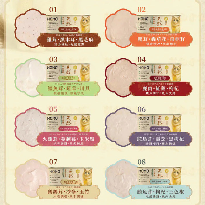 MOMOcare萌寵守護以東方食養理念,結合現代營養科學,為您的愛貓推出養心滋膳鮮肉茸主食罐我們相信「好情緒來自好腸胃,安定幸福從一餐開始」。養心滋膳象徵「以食養生,柔潤滋養」,結合溫和滋養湯底調理,專為情緒理解與營養平衡。